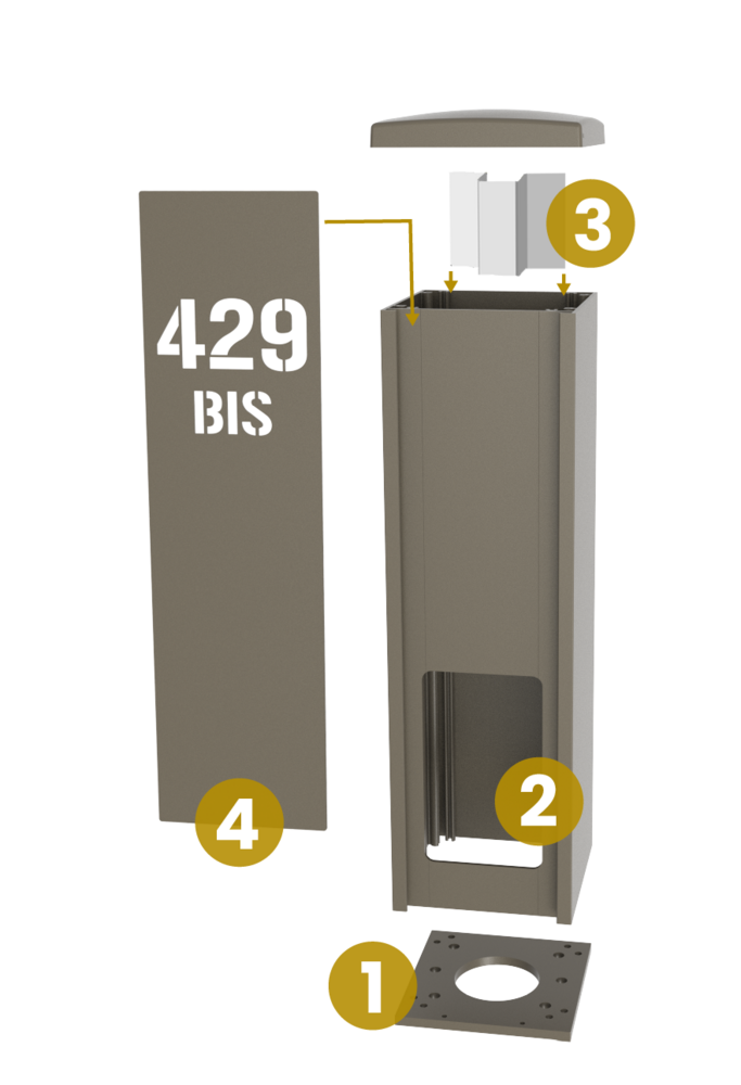 Platine invisible : fixation au sol à l’intérieur du poteau