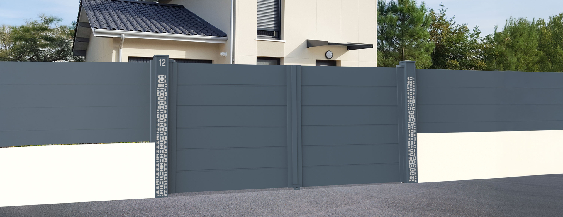 Donnez du caractère à votre portail grâce à nos décors intégrés au poteau ! Ces finitions audacieuses soulignent votre style et s’harmonisent avec l’architecture de votre maison.