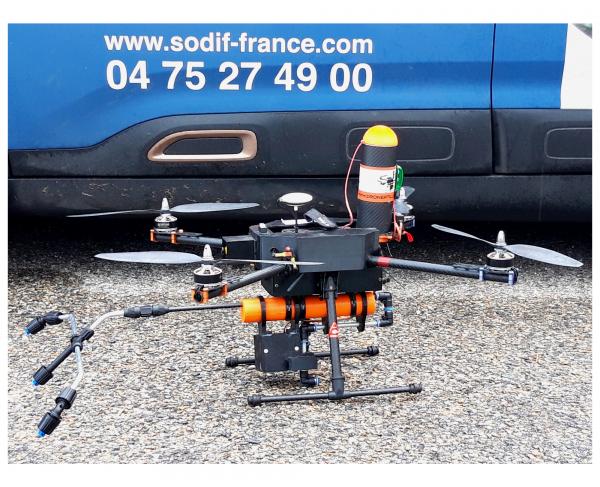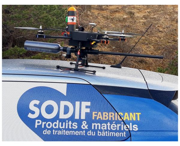 DRONE ARES BTP est un drone professionnel pour le traitement et le démoussage des toitures et des façades.