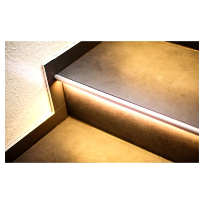 Marche après marche, les nouveaux profilés nez-de-marche « Florentostep LED » de Dural garantissent un éclairage indirect agréable et sécurisent les marches des escaliers en carreaux et pierre naturelle. Ses profilés en aluminium extrêmement résistant au design florentin offrent en outre une protection durable des arêtes, tant à l'intérieur qu'à l'extérieur.