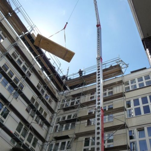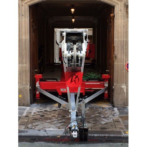 Une large gamme d'accessoires est disponible pour cette grue de manutention, notamment la nacelle pour personnel qui s'installe en quelques minutes. Un seul essieu renforcé, permet de positionner la grue sans endommager les terrains « idéal pour la rénovation ».