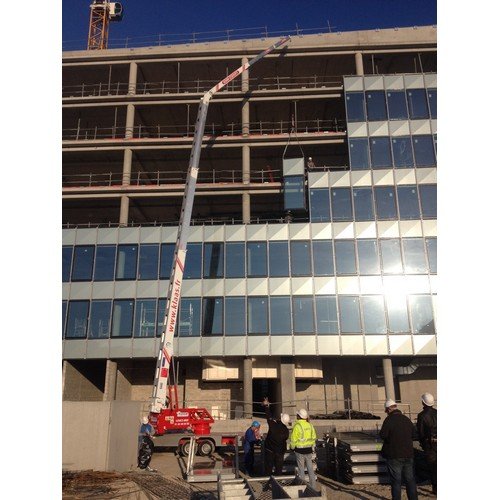 Ses capacités de levage sont de plus en plus performantes (1.5T jusqu'à 33m de hauteur et 31m de portée). La stabilisation automatique radiocommandée toute hydraulique permet de stabiliser la grue rapidement
