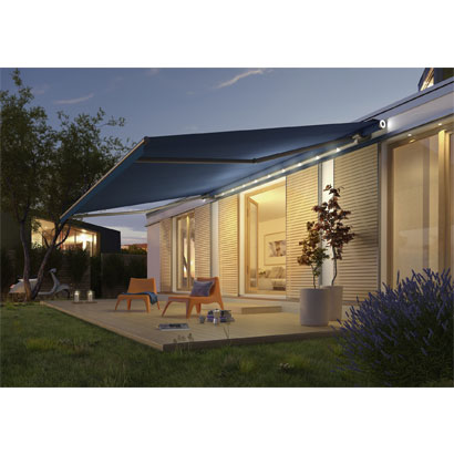 Nouveau store monobloc innove avec son design épuré, ses deux barres lumineuses LED, ainsi que son variateur de lumière.