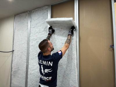 Isolant acoustique en rouleau pour cloisons distributives composé de textiles collectées et recyclées en France. Isolant conçu par et pour les pros. Conçu pour faire gagner du temps aux professionnels sur leurs chantiers : un rouleau prédécoupé en longueur de 2.7ML pour un gain de temps à la pose. Une découpe facile de l'isolant à la main. Un isolant doux, non irritant, facile à manipuler et sans odeur. Une matière résiliente qui épouse parfaitement les montants standards qui va également offrir une réduction des ponts thermiques et acoustiques. Un Ballot léger, facilement manipulable et transportable qui va simplifier la logistique grâce à sa poignée intégrée. L’isolant le plus performant du marché : Testé en Laboratoire : Rw (C; Ctr) = 43 (-2; -7) dB Système : cloison 72/48 BA13 Std L’intensité sonore est réduite de 90 % comparée à une cloison sans isolants en 725/48 BA 13 Std Une réduction de l’intensité sonore réduite par 10 correspond à une perception auditive divisée par 2. PAR SON 43 dB va atténuer les bruits intérieurs du quotidien : voix, TV, musique : (Rw+C) = 41db Isole des bruits extérieurs : Trafic routier, bus, travaux, métro : (Rw+Ctr) = 36dB. Un isolant en fibres de textiles recyclées, SEMIN est le seul acteur en France capable de recycler et revaloriser l’intégralité des textiles mis sur le marché: coton, jeans, polyester en apportant une réponse concrète à une problématique majeure. Cette aventure humaine s’inscrit aux côtés de TREMPLIN, association sociale et solidaire, pour maîtriser la chaîne de valeur, créer de l’emploi local et donner du sens à chaque fibre recyclée. Les isolants SEMIN en textiles recyclés offrent ainsi un véritable exutoire aux milliers de tonnes de vêtements jetés chaque année.