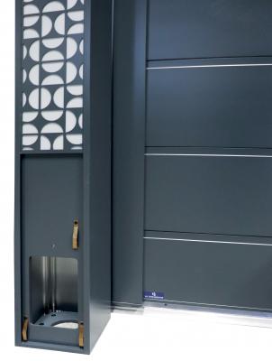 Coté esthétique, la partie avant du poteau est composée d’une tôle décorative laser sur l’extérieur et un fond qui peut être un profil plaque décor laquée, une plaque PMMA Opale ou une plaque décors bois Il est possible de modifier la couleur de l’ensemble des éléments. selon 17 coloris au choix