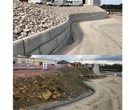 Les REDI ROCK sont des éléments béton de 650 kg à 1500 kg qui s'empilent les uns sur les autres et réutilisables à volonté.