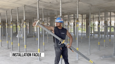 Par sa conception simple et efficace, le stabilisateur SafetyJack retiendra les étais en place lors des variations de température, vibrations sur les chantiers et au séchage du béton. Créer afin de faciliter l'installation et la désinstallation des étais sans impact sur ceux-ci et minimisant les accidents en chantier (chute, éclat de métaux et musculosquelettique)
