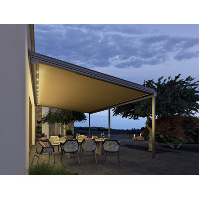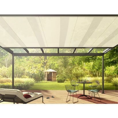 Le store de dessous de toits de terrasses et vérandas Sottezza II dispose d'un système fiable de tension de la toile par corde. Equipé d'une technique de poulie, ce store offre en permanence une tenue constante et homogène de la toile.