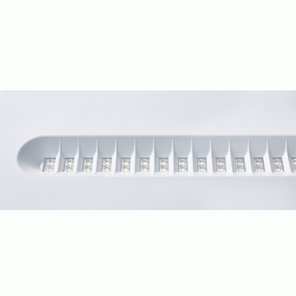 Des groupes de lentilles sont encastrés dans des cellules de protection de sorte que la source lumineuse est pratiquement invisible. Il en résulte qu’il n’y a pratiquement pas de contraste entre les luminances du luminaire et le plafond.