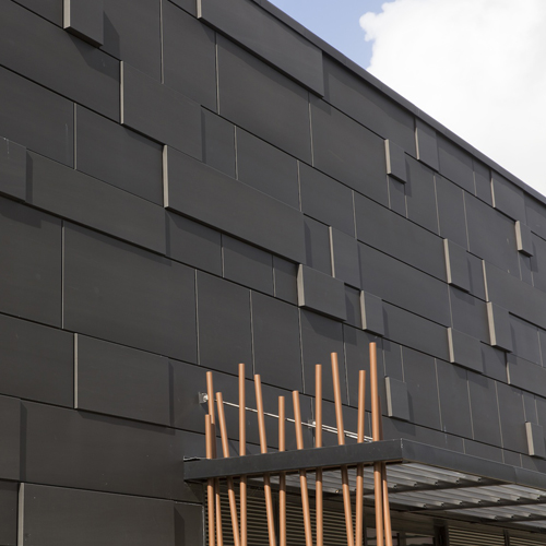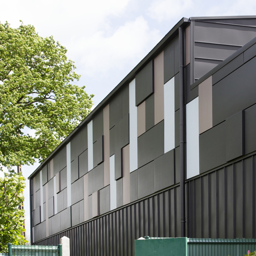 La gamme de cassettes modulaires en zinc VMZ Mozaik se pose sur une ossature rapportée. Elle se décline en treize formats et 4 profondeurs. Ses éléments carrés ou rectangulaires, assemblés grâce à d’ingénieux pliages, apportent au bâtiment une esthétique moderne, particulièrement soignée. C’est la garantie d’une façade aux lignes pures et structurées.