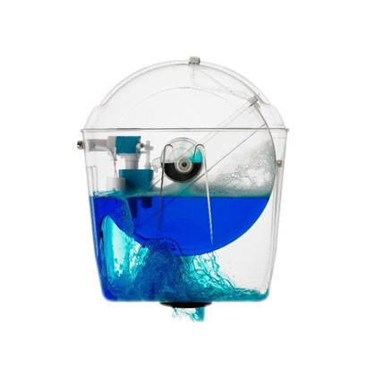 Le système de chasse d'eau « Free Flush » est en effet dépourvu de joint (ou soupape) d'étanchéité : la chasse s'effectue par déversement d'une réserve rotative. L'utilisateur la manipule directement via une molette externe, libérant ainsi à sa convenance entre 1 et 6 litres d'eau.