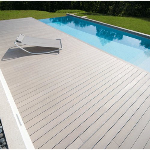 Un composite aux caractéristiques physiques exceptionnelles : 55% de farine de bois (la plus fine du marché) associée au Pe HD pour une excellente résistance aux U.V. et une meilleure durabilité.